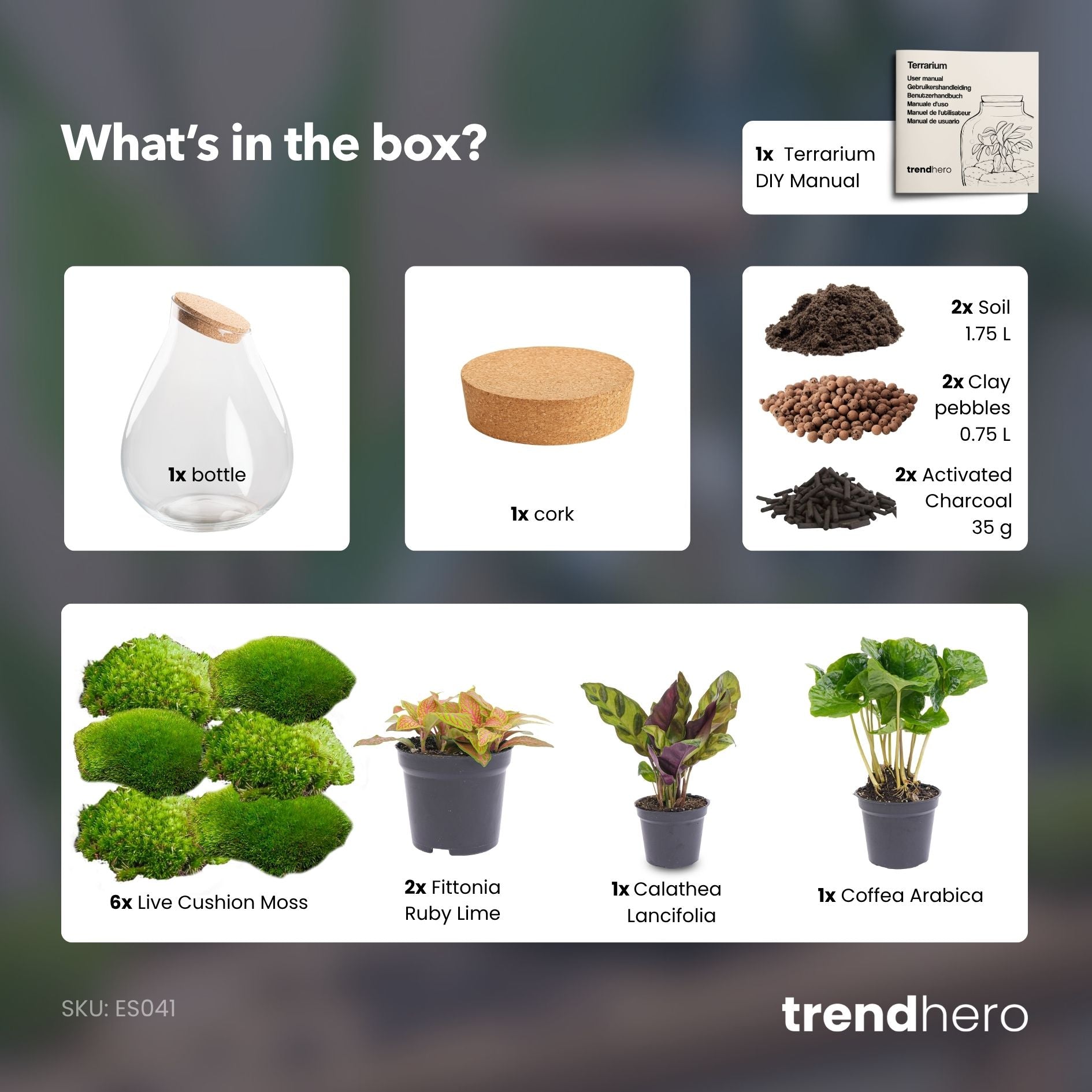 Contents of the plant terrarium kit