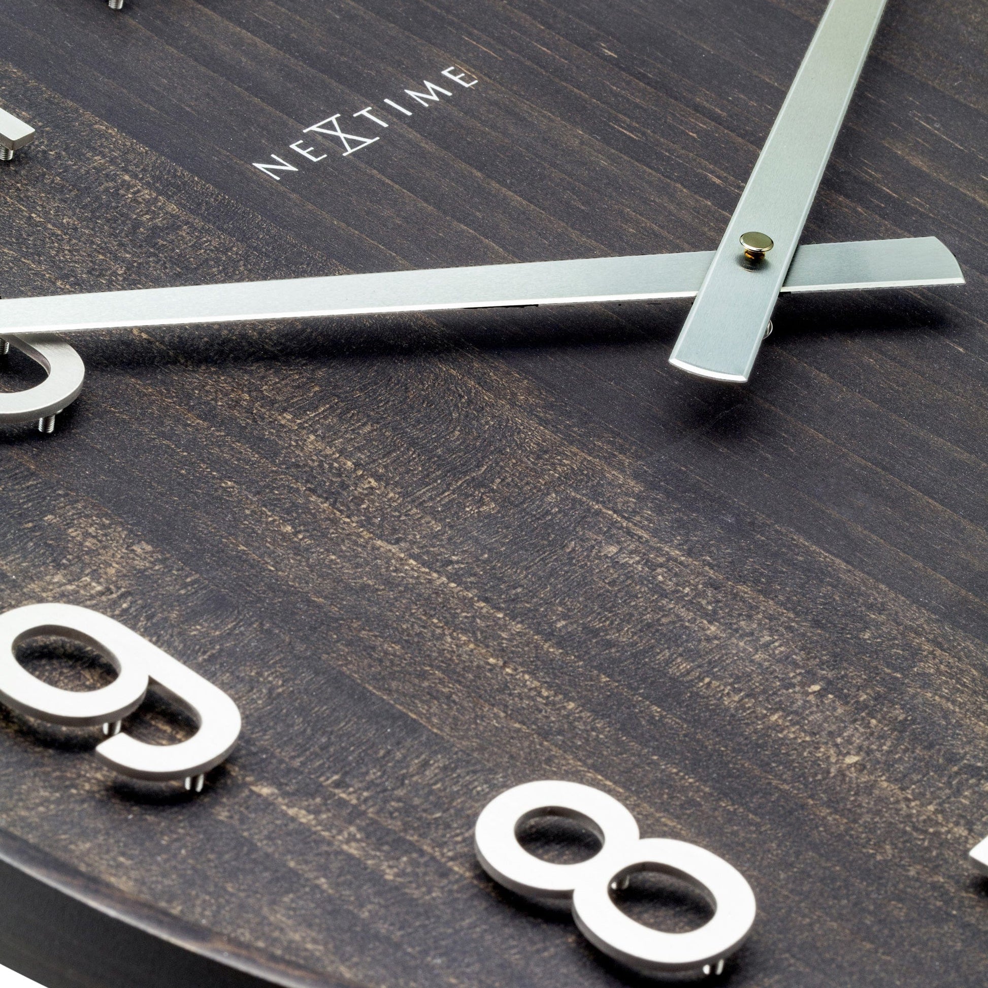 NeXtime’s Precious (50cm) is a large silent wooden wall clock with a classy, chic look. The clock numbers in brushed silver metal finish are nailed away from the natural wood dial in walnut colour, allowing space for shadows to cast, creating a sophisticated 3-dimensional effect. This clock runs on 1 x AA battery (not included)