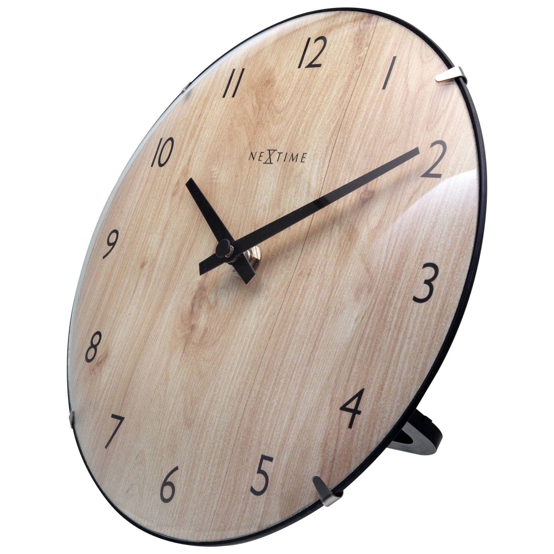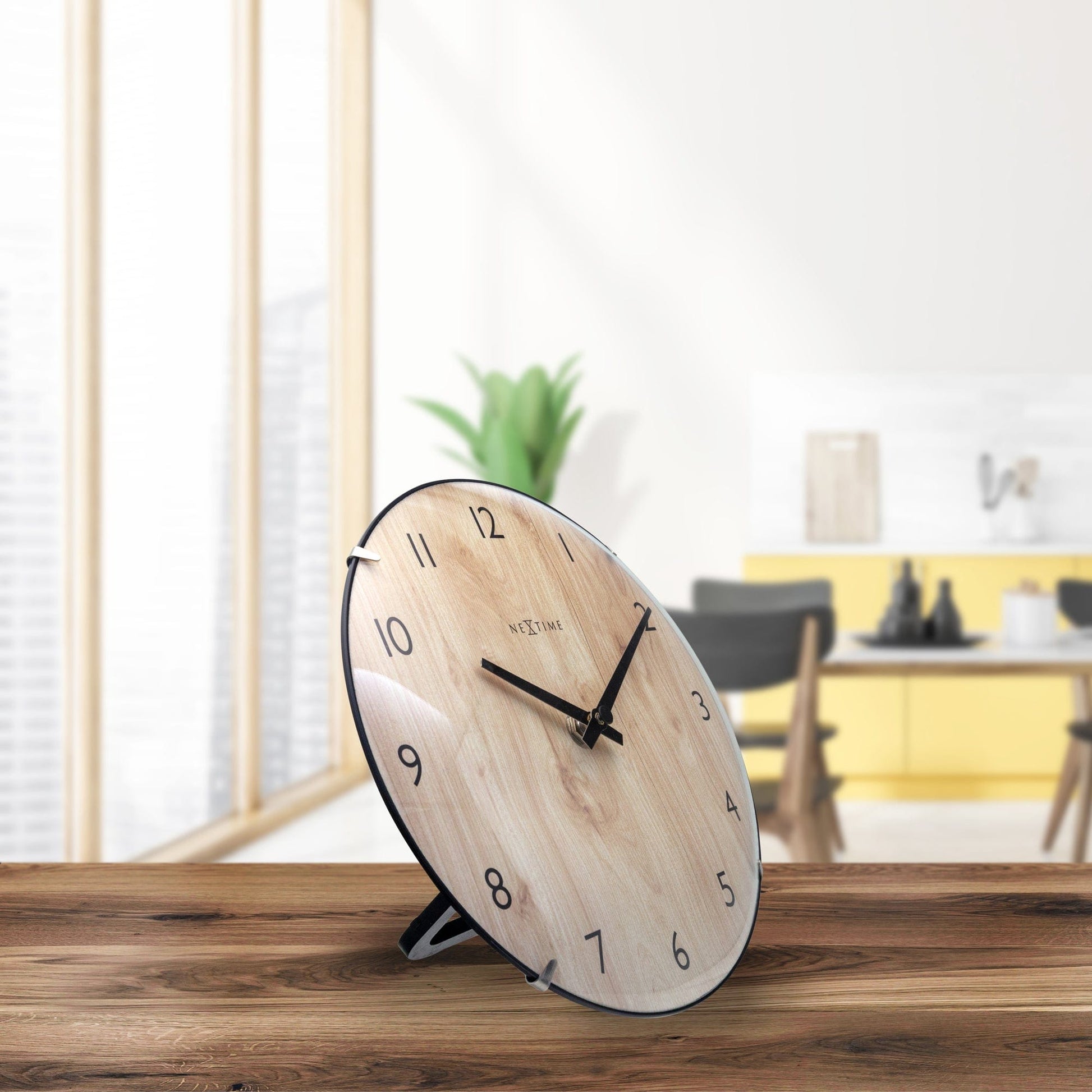 NeXtime's Edge Wood Mini (20cm) is a silent table and wall clock. The clock dial is printed with a light wooden pattern under the dome shaped glass cover that adds distinctive refinement to the natural wood look. This clock uses 1 x AA battery (not included).