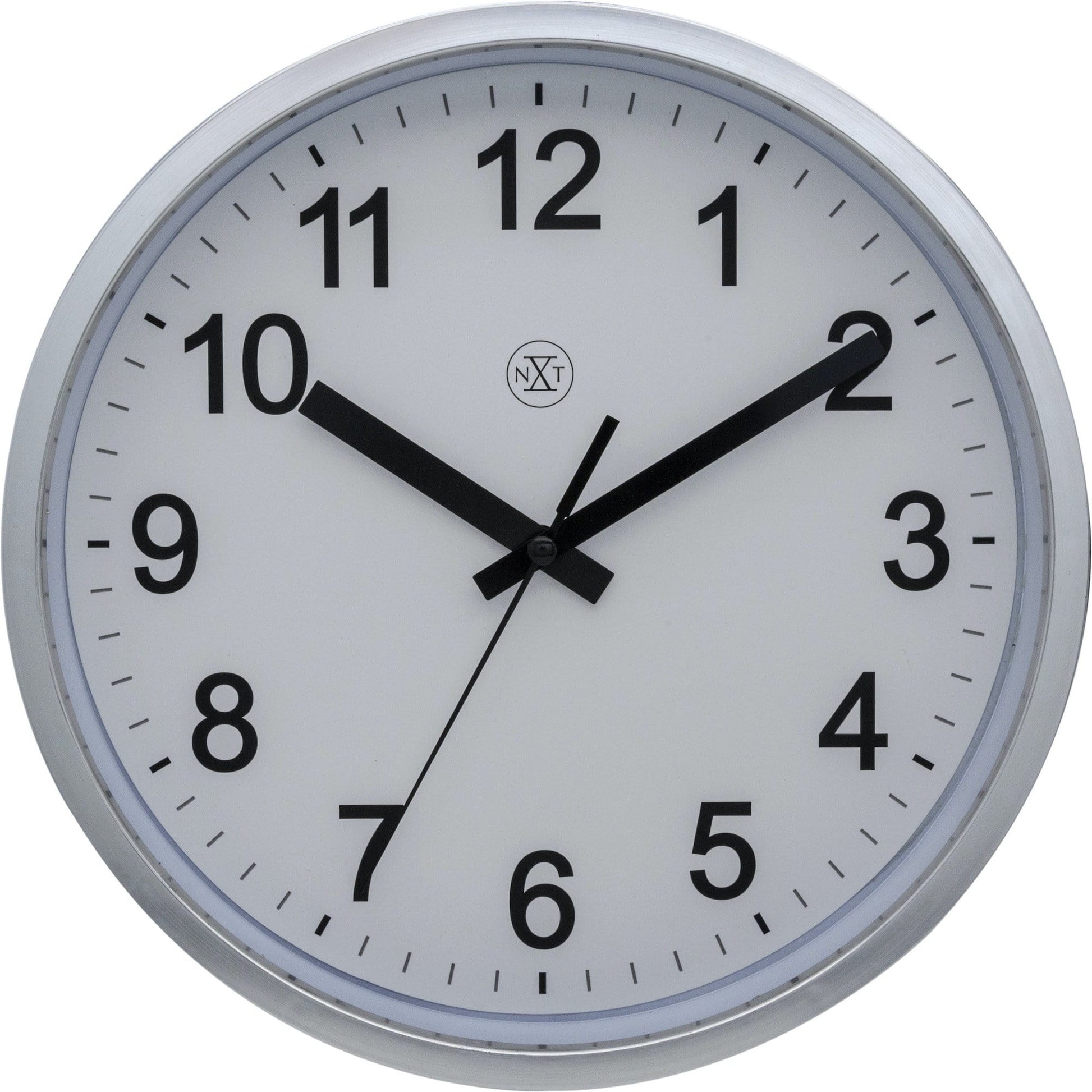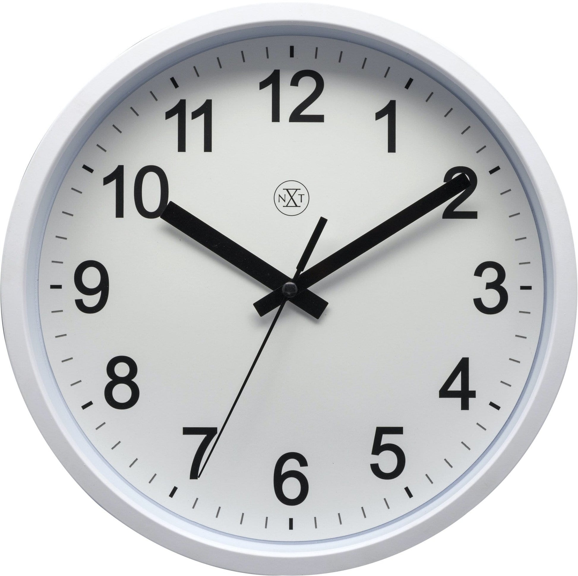 The nXt "Robust" is a plastic wall clock (Ø25,5 cm). The dial has clear numbers and bold hands. It runs on 1x AA battery (not included).