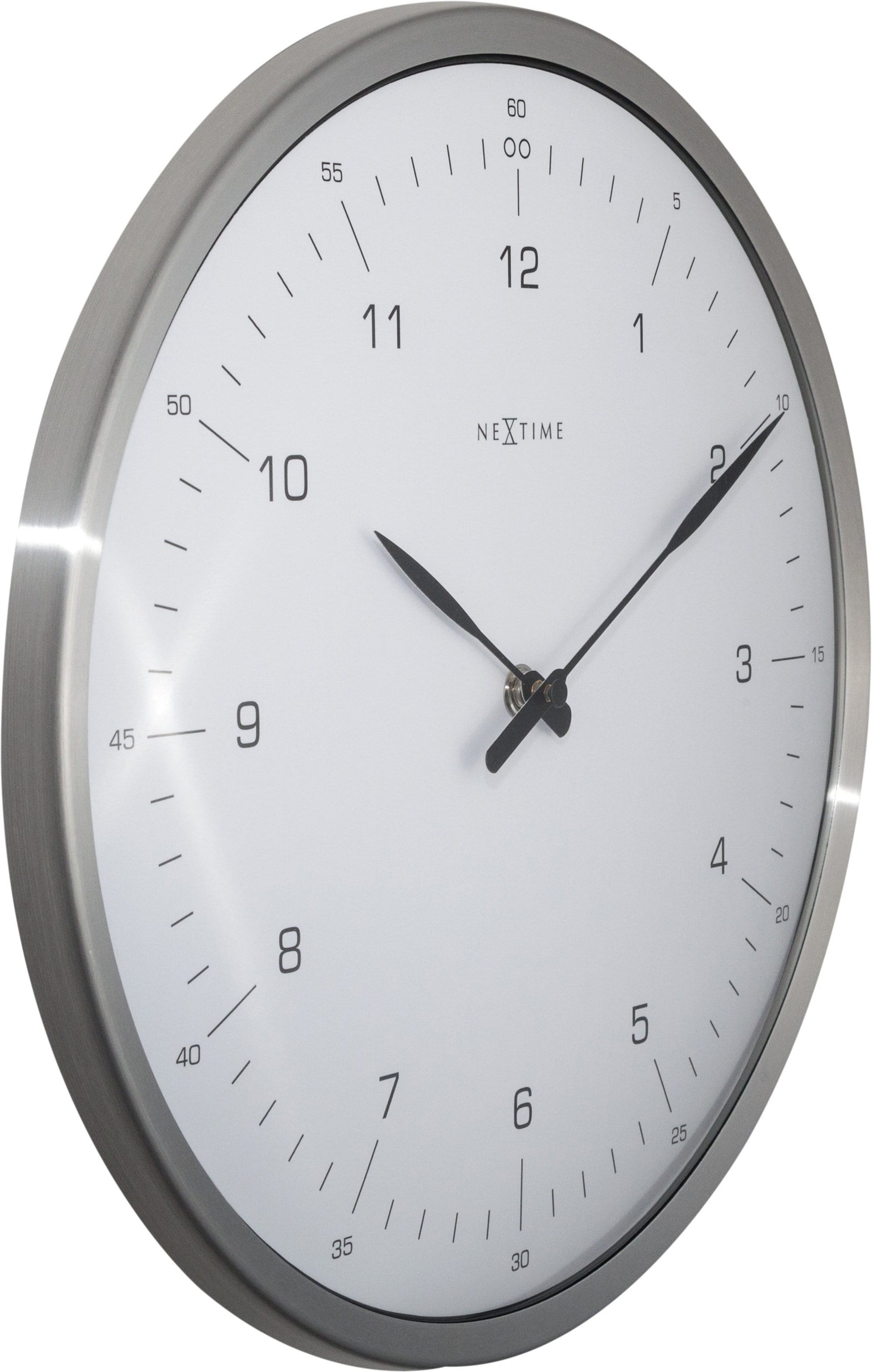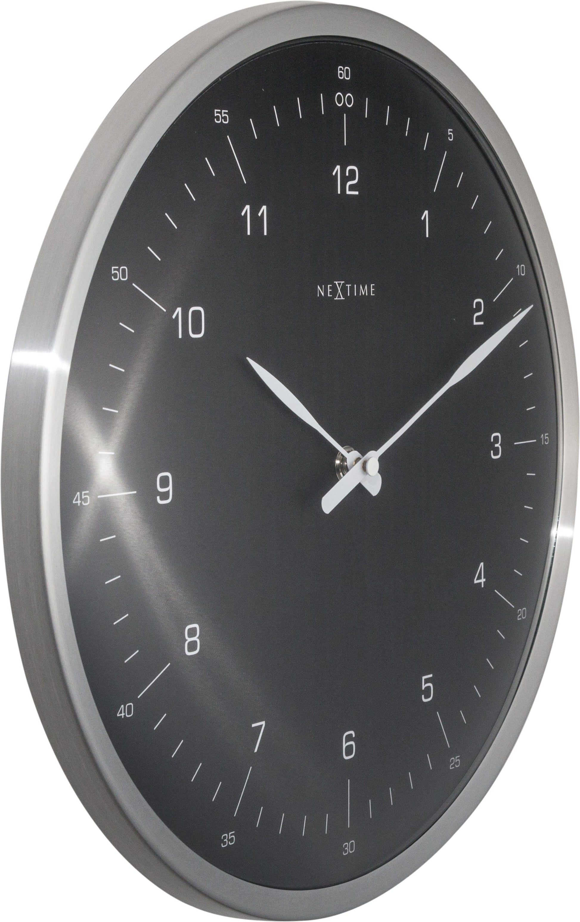 The NeXtime "60 minutes" is a wall clock with a shiny metal case and a professional styling. The clock shows the hours and minutes in an hour. The dome shaped glass makes this clock unique, perfect to hang in a working space. This clock is silent and runs on 1 AA battery (not included).