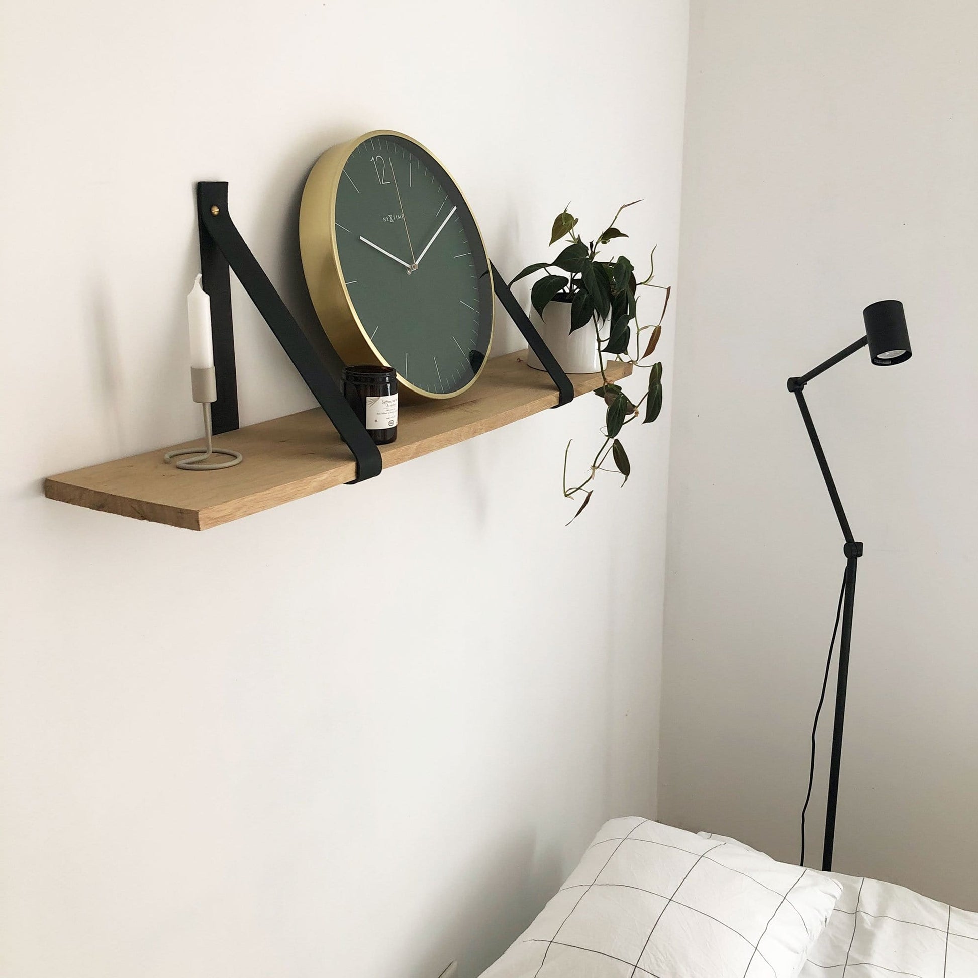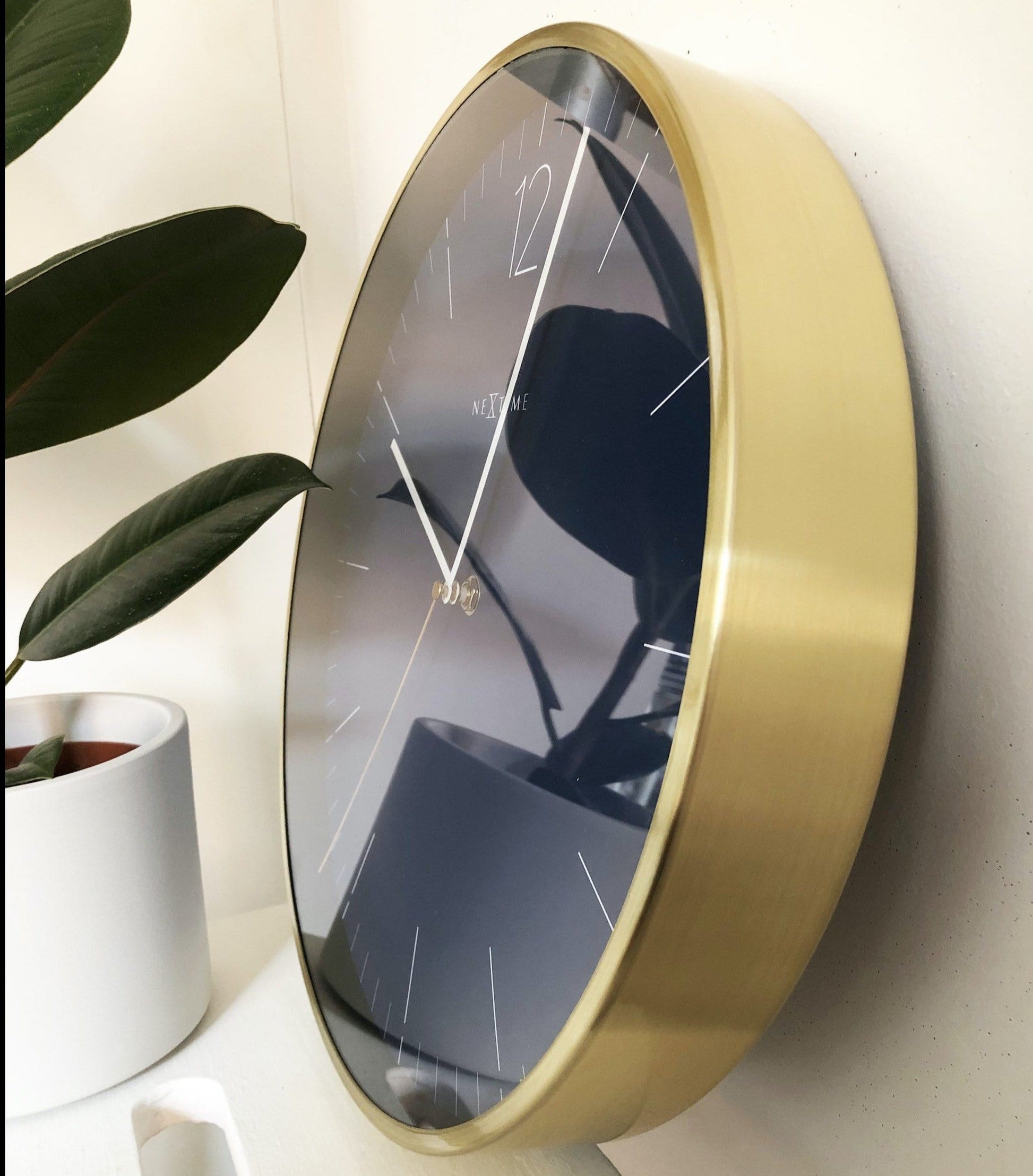 The NeXtime "Essential Gold" is a round (Ø34cm) wall clock. The clock has a golden case made of brushed aluminium, a dial with a stripe index and a number at 12 o'clock. The thin hands and second hand gives this clock a lovely chic and stylish design that fits in many interiors. This clock is silent and works on 1 AA battery (not included).