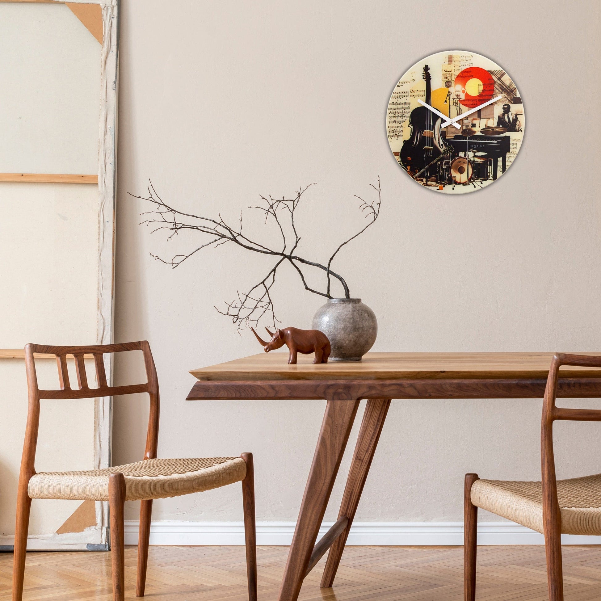 NeXtime 'Blues' wall clock - 43cm glass clock is inspired by the music trend. Its vibrant colours and bold graphics make it more than a timepiece – it’s a piece of art. The silent clock requires 1 x AA battery (not included). Let your walls resonate a sentimental melody of style and colour with 'Blues'!