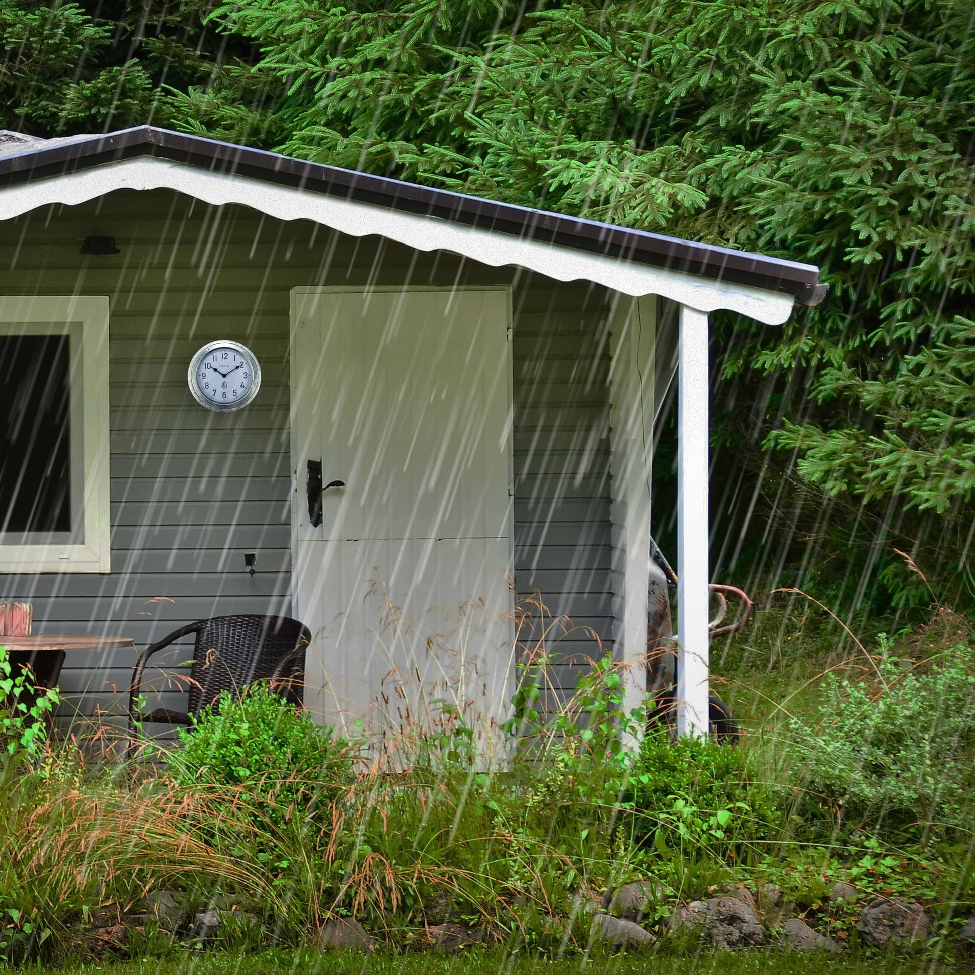 Weatherproof Outdoor Wall Clock - 22cm - Metal - Galvanized Poppy